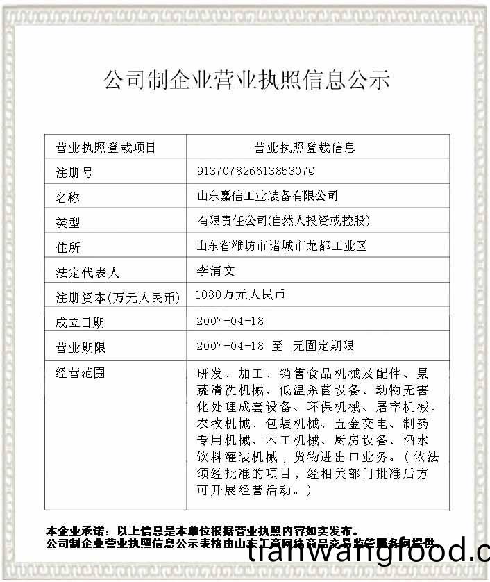 山(shan)東嘉(jia)信(xin)工(gong)業(yè)(ye)裝備(bei)有限公(gong)司有(you)著多年(nian)來(lái)(lai)從事清洗(xi)機(jī)(ji),烘榦(gan)機(jī),巴氏(shi)殺菌(jun)機(jī)(ji)等(deng)食品機(jī)械設(shè)備(bei)的生産製(zhi)造經(jīng)驗(yàn)(yan)??@(zhi)力于(yu)讓(rang)産(chan)品(pin)的品質(zhì)更有保障。