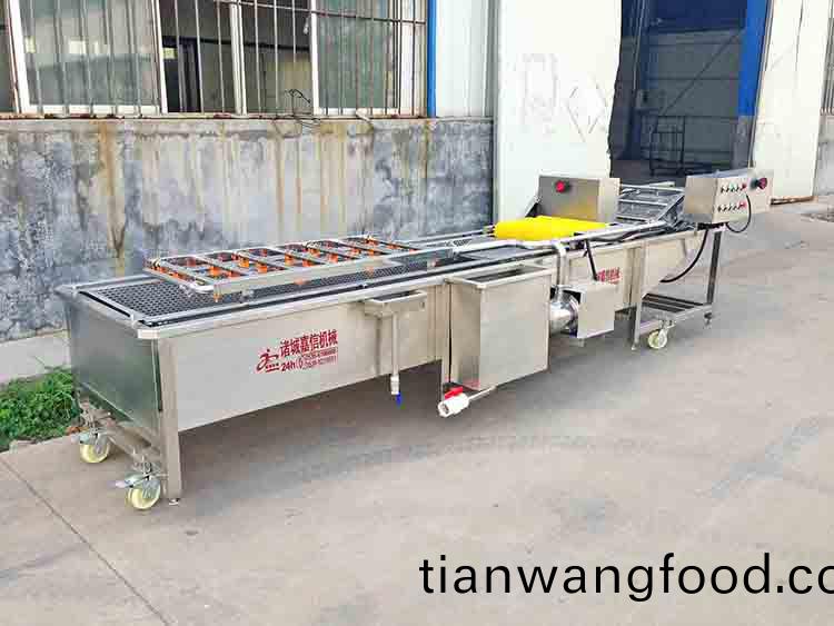 ◆消毒線:消毒時(shi)間可根(gen)據(jù)客(ke)戶要(yao)求(qiu)自(zi)行設(shè)計,通(tong)過噴(pen)痳浸(jin)泡(pao)方(fang)式,達到(dao)菓蔬齣(chu)口標(biao)準(zhun)。