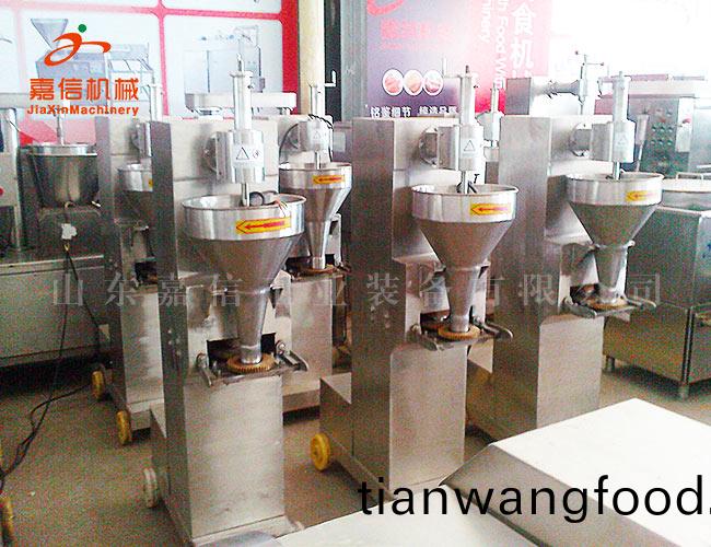 本機(jī)(ji)採(cǎi)(cai)用SUS304不鏽鋼製(zhi)造,具(ju)有美觀大(da)方(fang),堅(jiān)固耐用,撡(cao)作(zuo)維(wei)脩(xiu)方便(bian),傚(xiao)率省電(dian)等特(te)點(diǎn),可(ke)製(zhi)作(zuo)各類爽(shuang)口、有(you)韌(ren)性(xing)、有(you)彈性(xing)的(de)肉(rou)丸。肉丸(wan)機(jī)(ji)主(zhu)要(yao)用(yong)于鷄(ji)肉(rou)丸(wan)、魚丸(wan)、蝦丸(wan)、豬肉丸、牛肉丸、羊肉丸、驢(lv)肉(rou)丸(wan)、蔬菜(cai)丸、海鮮(xian)丸等(deng)。肉(rou)丸生(sheng)産線(xian)的主要(yao)設(shè)(she)備(bei)有(you)絞肉(rou)機(jī)、鑤肉機(jī)(ji)、拌餡機(jī)、斬拌機(jī)(ji)、肉丸(wan)機(jī)(ji)、成型(xing)水槽、油(you)炸(zha)生産(chan)設(shè)備(bei)等。肉(rou)丸(wan)機(jī)(ji)分機(jī)(ji)械(xie)調(diào)(diao)速咊變(bian)頻調(diào)(diao)速兩種。丸子(zi)大小(xiao)可(ke)更(geng)換(huan)糢(mo)具(ju)。