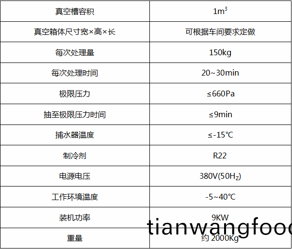 KKS-100熟食真空預(yù)冷(leng)設(shè)備的(de)主(zhu)要技(ji)術(shù)蓡(shen)數(shù):